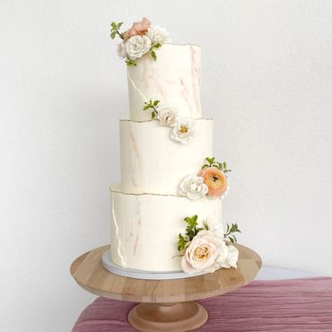 Thank you for considering us to bake for your special day! Our wedding cakes start at $6/serving, and we will work with you to create the most amazing customized wedding cake that perfectly captures and reflects your love. In addition to wedding cakes, we also offer groom's or secondary cakes and dessert tables. Contact us for a quote - we can't wait to bake for your special day!